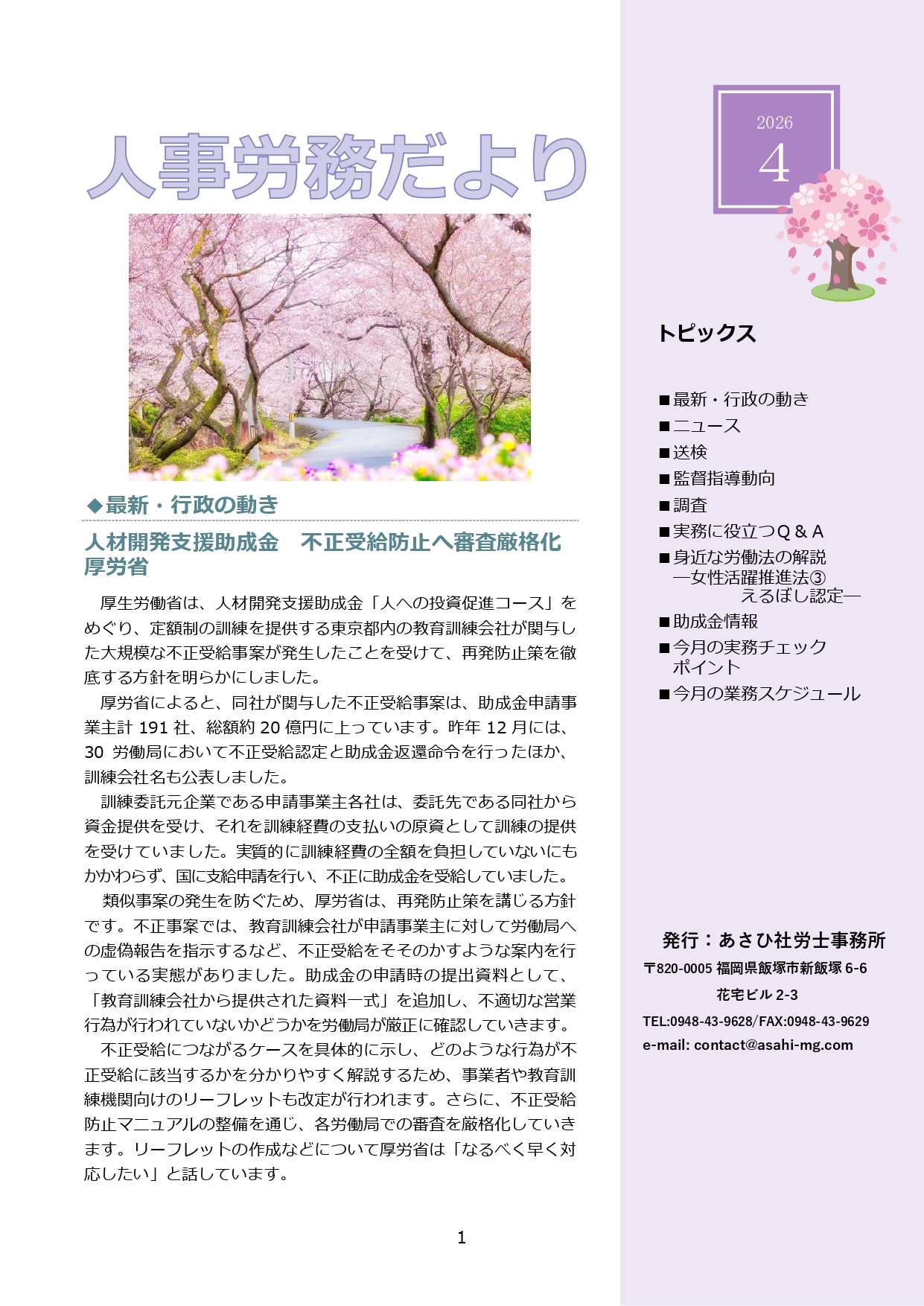 ※閲覧にはパスワード等の入力が必要です事務所通信「2025年4月号」を作成しました。