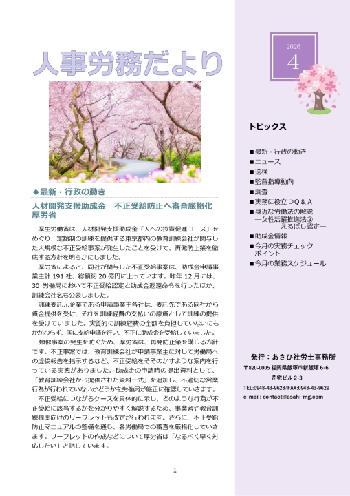 ※閲覧にはパスワード等の入力が必要です事務所通信「2024年4月号」を作成しました。