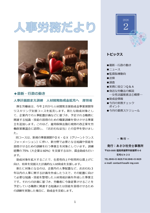 ※閲覧にはパスワード等の入力が必要です事務所通信「2025年2月号」を作成しました。