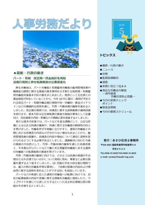 ※閲覧にはパスワード等の入力が必要です事務所通信「2025年5月号」を作成しました