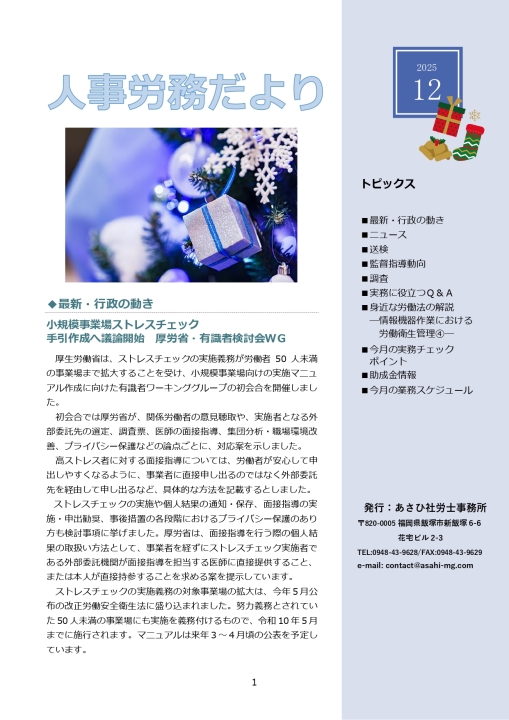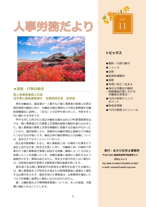 ※閲覧にはパスワード等の入力が必要です事務所通信「2025年11月号」を作成しました