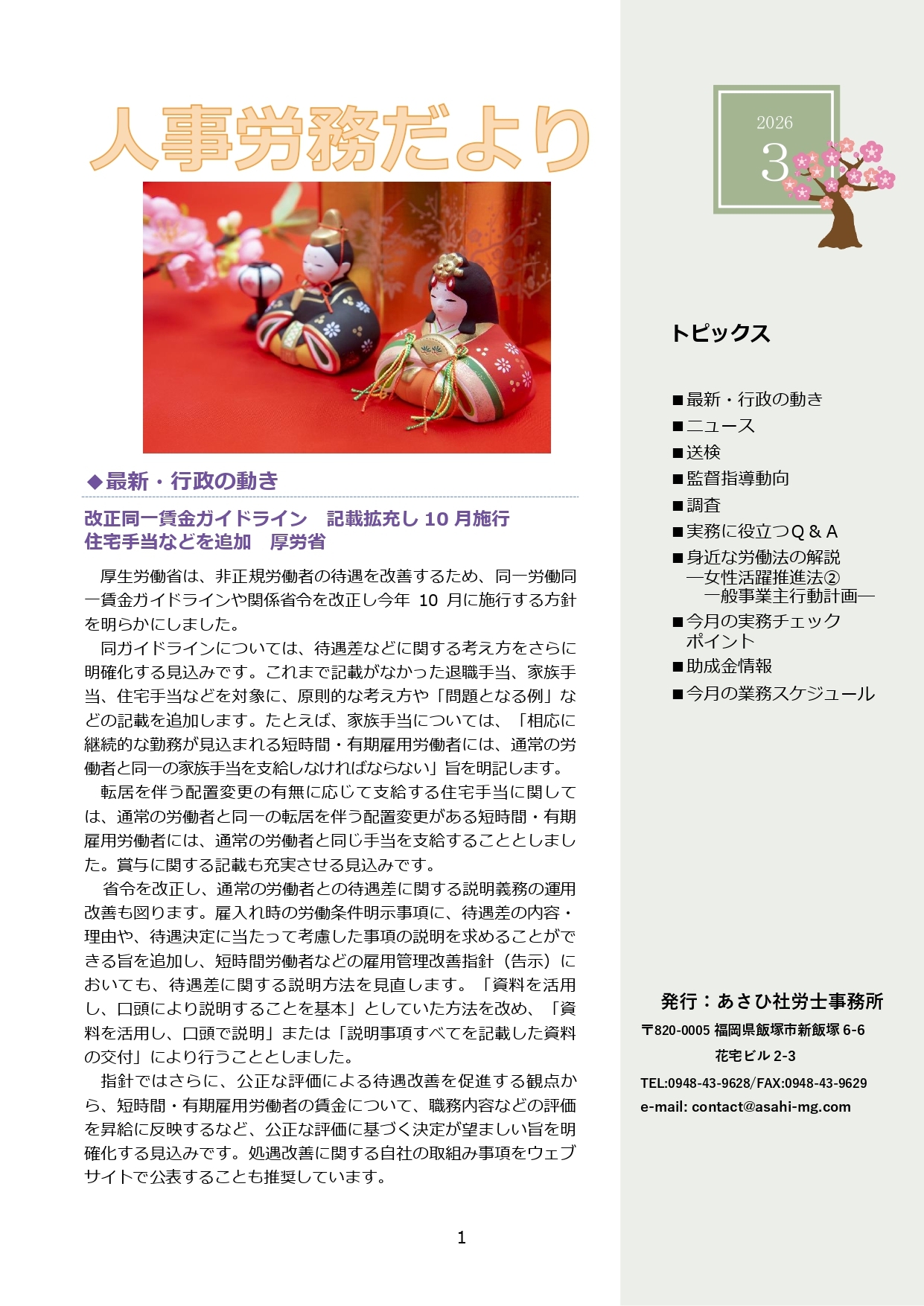 ※閲覧にはパスワード等の入力が必要です事務所通信「2025年3月号」を作成しました。