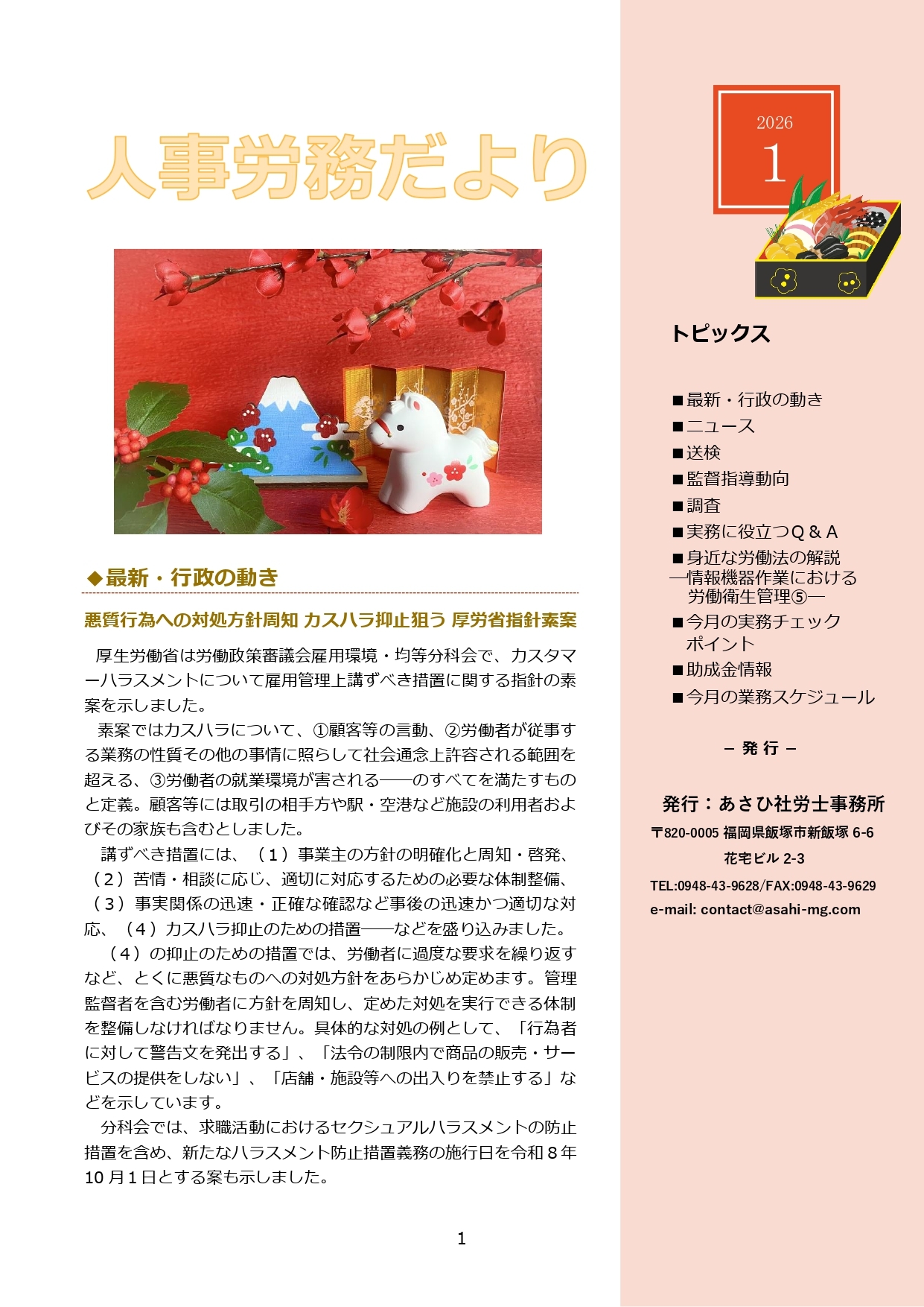 ※顧問先企業様には、手渡し・郵送・メールにてご提供させていただいております。
